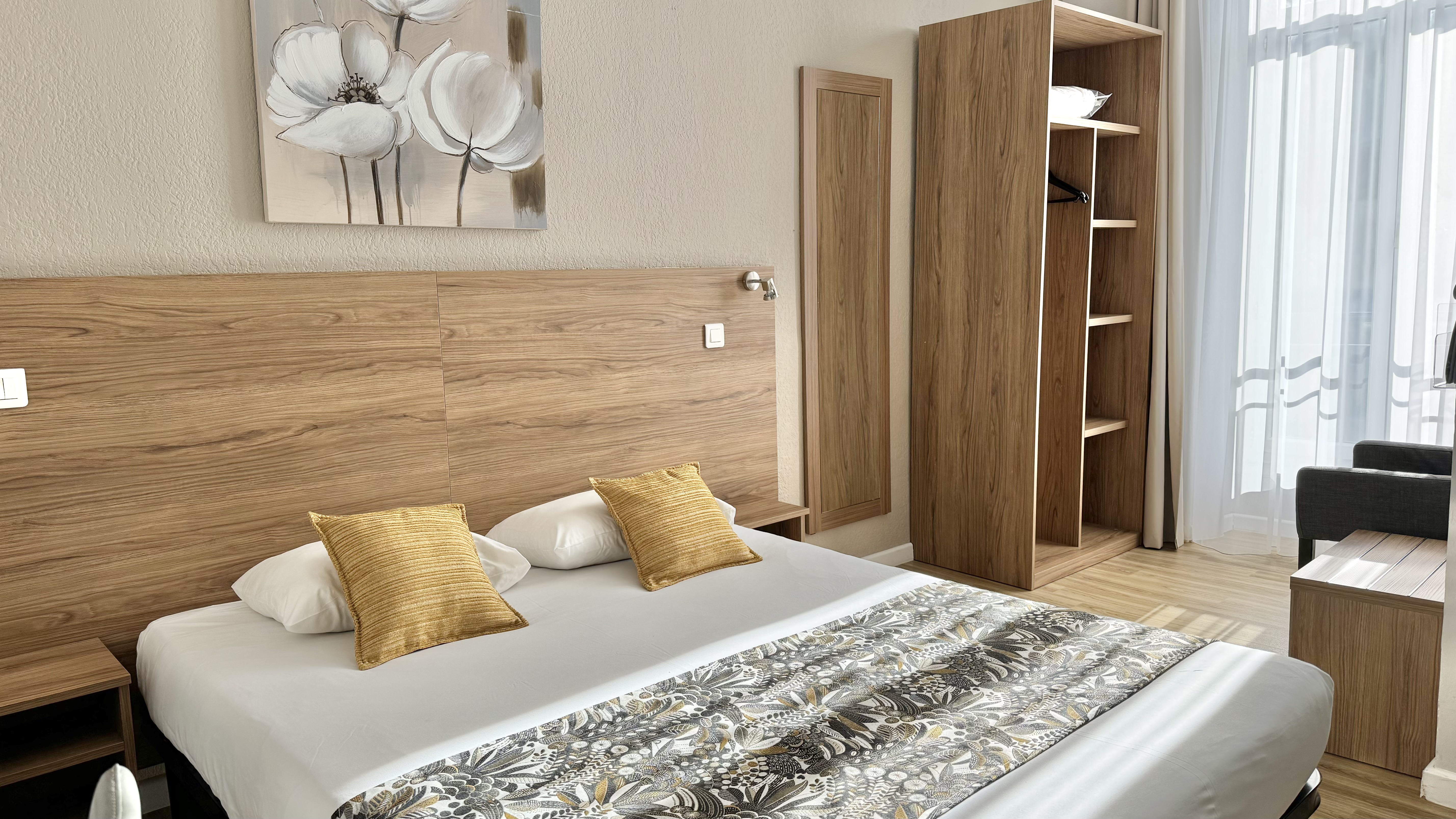 Just a 10-minute walk or tram ride from all amenities, the hotel is perfectly suited to business tourism thanks to its comfortable rooms, its high-speed WIFI and free internet access point, its team available 24 hours a day at your service, and its paid parking spaces, subject to reservation.