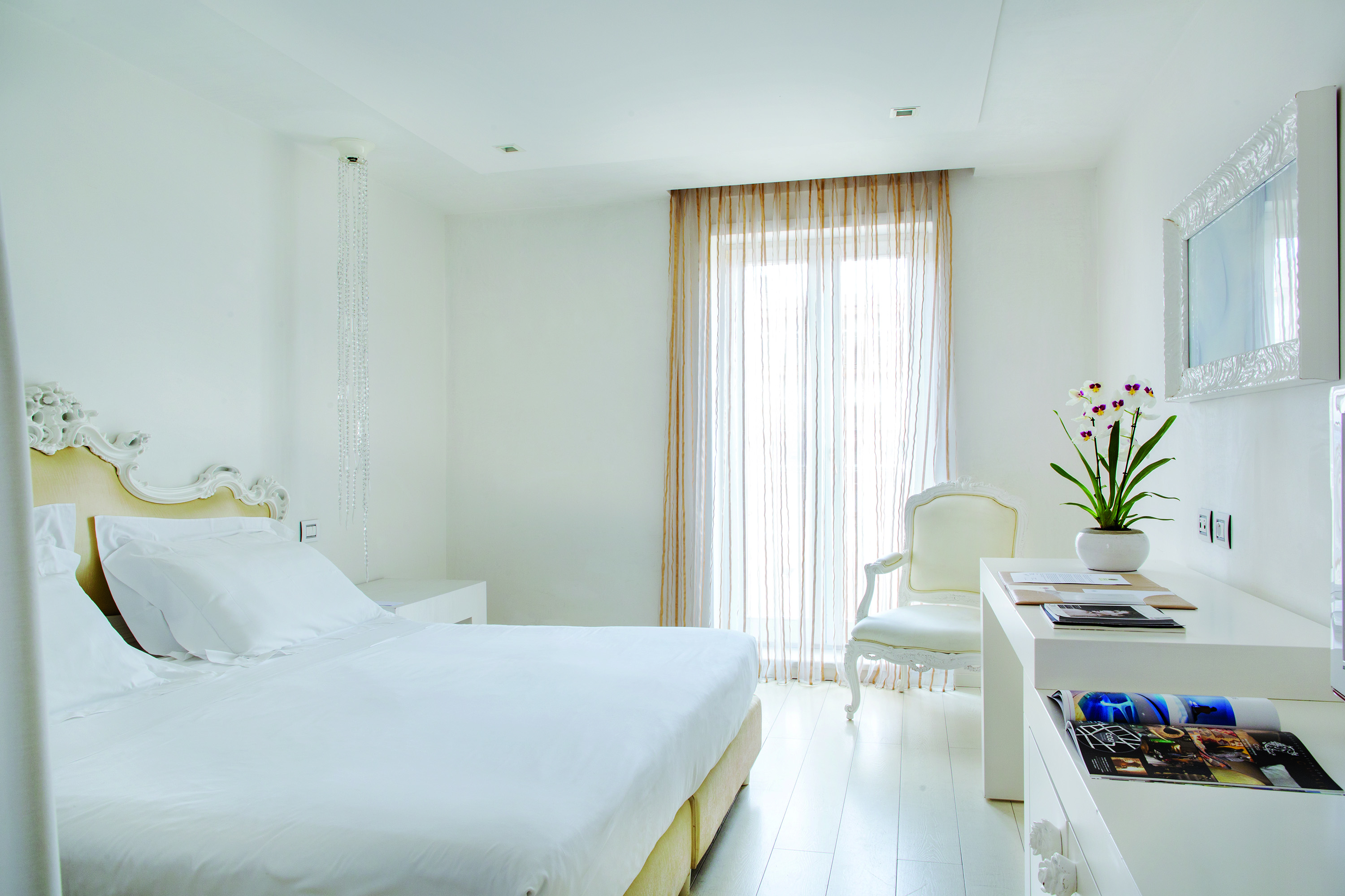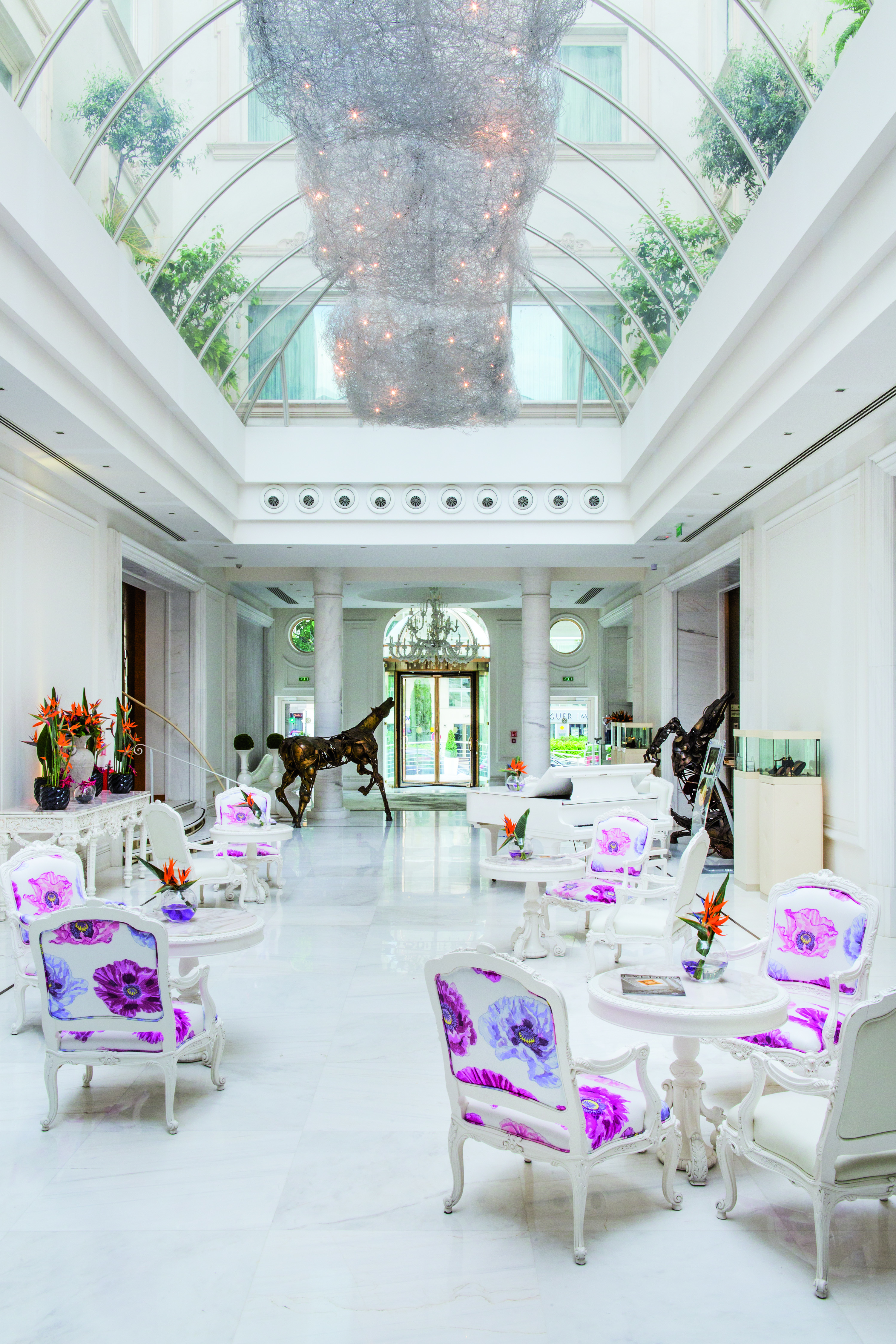 Découvrez ses 112 chambres et suites rénovées dans un style intemporel : marbre blanc, parquet, tons lumineux et irisés d'ivoire, crème et doré, salles de bains en mosaïque...