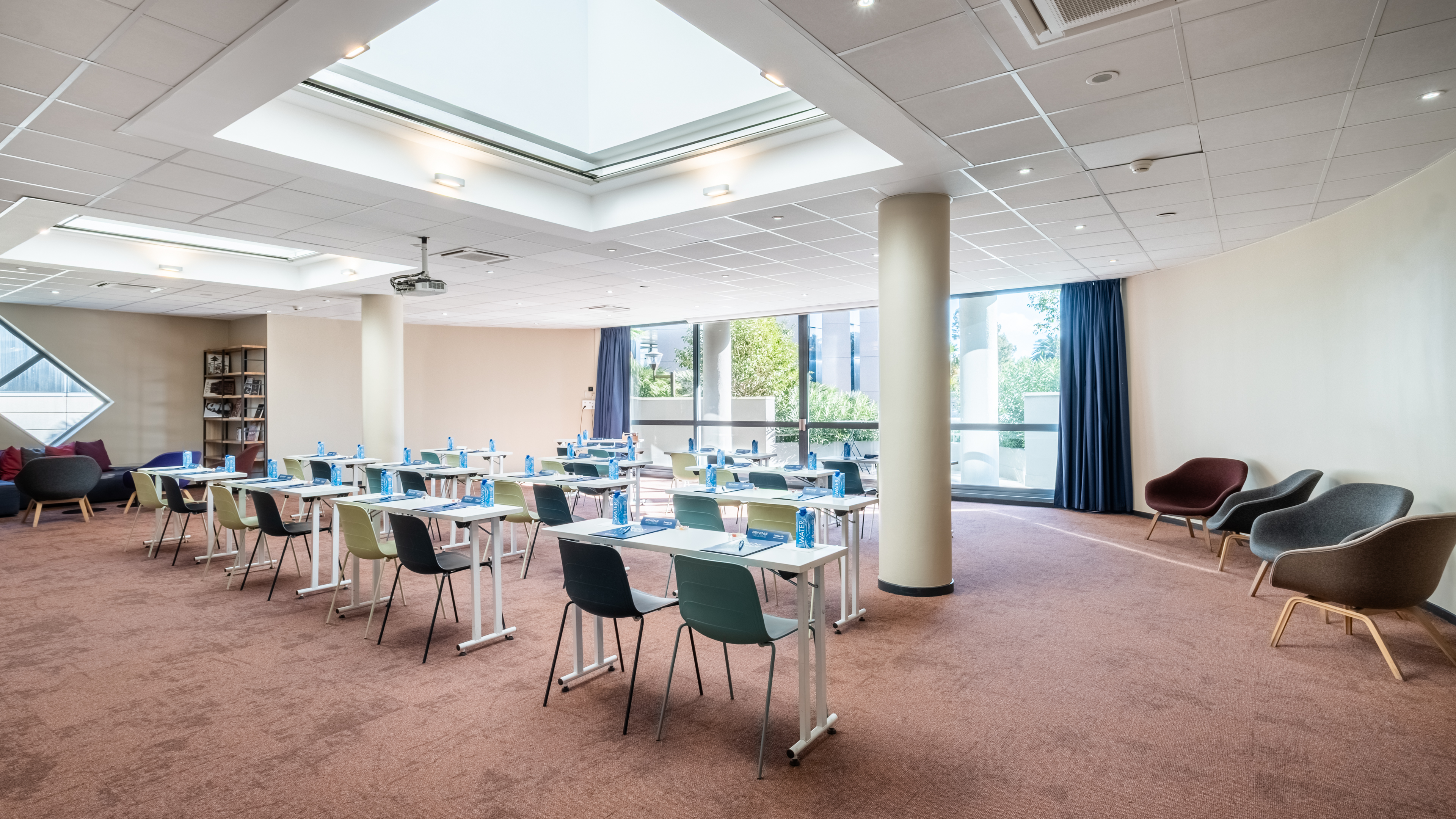 L'hôtel dispose de deux salles de réunion de 40m² et une de 150m² pour vos événements jusqu'à 300 personnes.