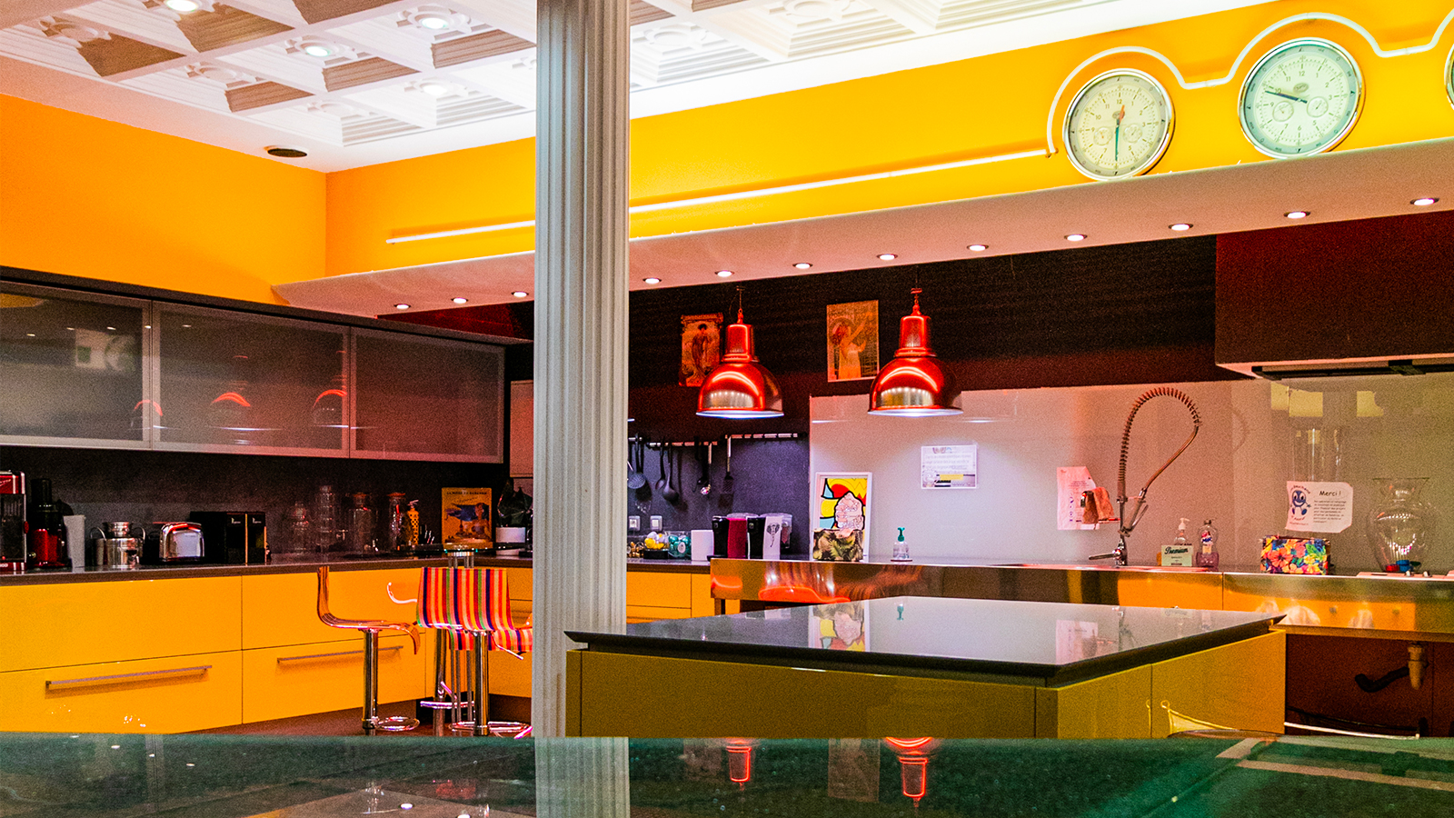 Notre cuisine de 70m² est accessible et mise à disposition pour toute location de salle : pour prendre un thé, un café pendant ou après votre séance de travail, seul ou avec votre équipe, ou pour poursuivre vos échanges et proposer un moment de networking aux invités ou participants.