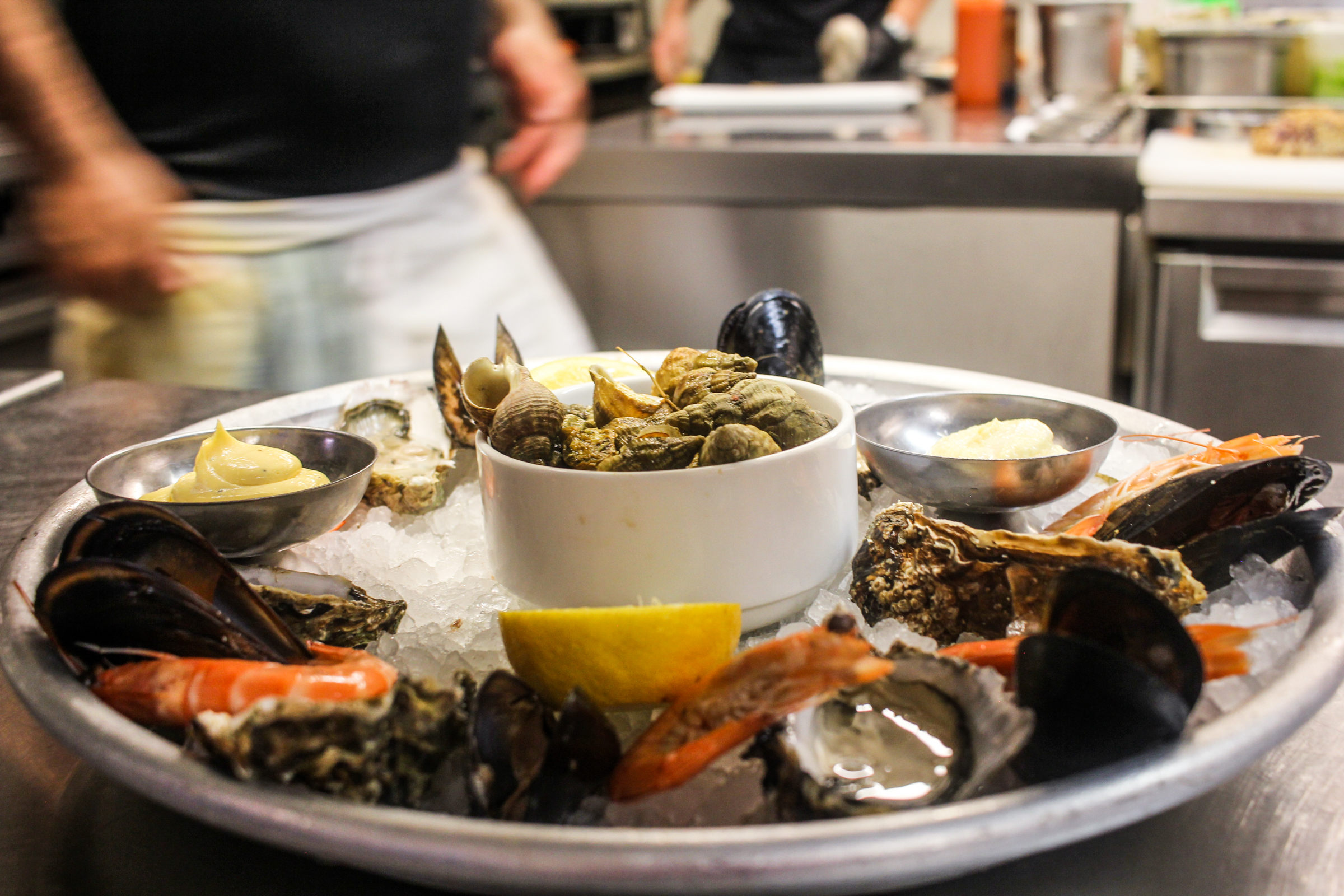 Restaurant de poissons frais, coquillages, bouillabaisse, spécialités régionales, viandes sur le grill.