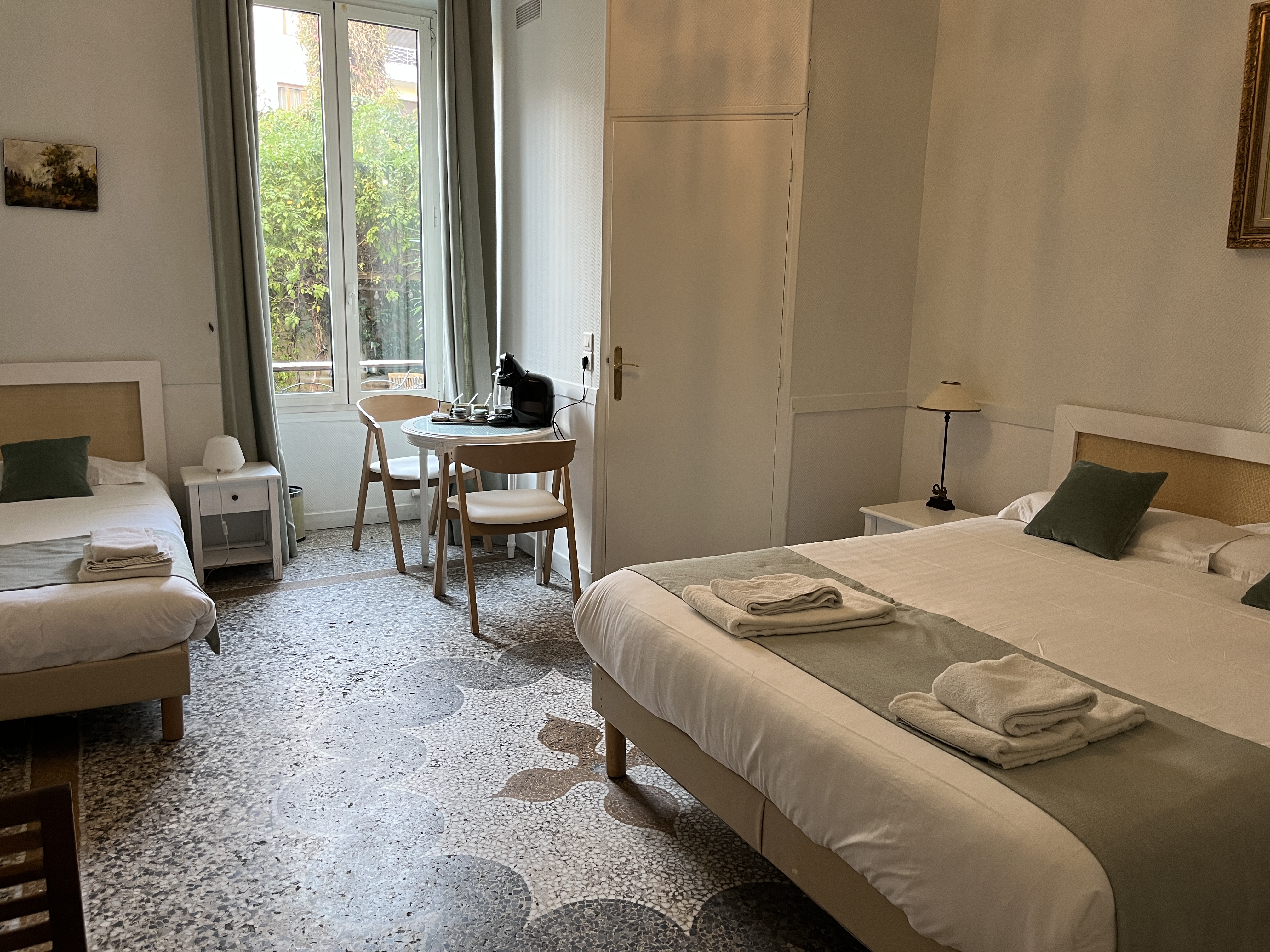 Nice Garden Hôtel is a charming 3-star hotel located in the heart of Nice, just minutes from the Promenade des Anglais, the beaches of the Baie des Anges, and key city highlights like Place Masséna. Set in an elegant early 20th-century townhouse with a peaceful orange tree garden, it provides a serene retreat in the city centre. Rooms feature air conditioning, free Wi-Fi, and modern comforts, and a breakfast is available on site. This welcoming hotel is perfect for exploring Nice on foot while enjoying a calm, authentic stay.